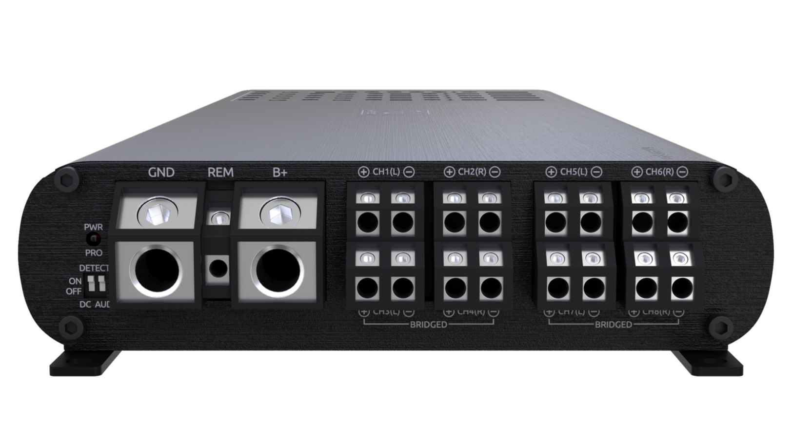 The link1400.8plus is the total package amplifier. It can power an entire system without limitations on features or performance. We start with 8-channels of input, so you can do a 4-way set up with a single amplifier. We are introducing matrix summing for the first time in a non-DSP amp. This means you can assign any input to any output for total flexibility over summing. The link1400.8plus has onboard highpass, bandpass and lowpass crossovers. This is the first amplifier to feature our patent pending autoBASS circuit that corrects bass roll-off.
