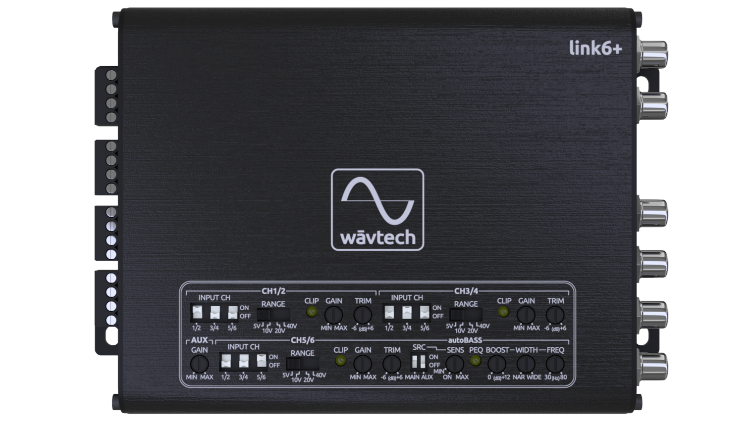 Many factory systems have protection against blowing speakers. This is called bass roll-ff. While this is helpful for protecting those factory speakers, it is a real problem when you are adding higher quality aftermarket components. Wāvtech’s patent pending autoBASS circuit solves this probelm. The link6+ also has a PEQ for fine tuning your systems subwoofer.