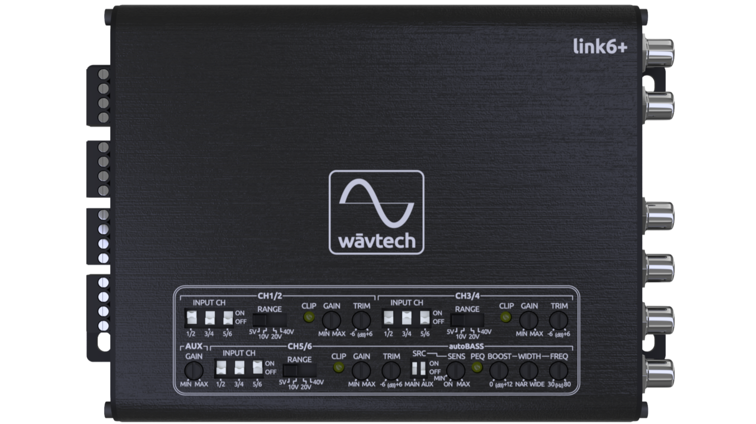 The most common aftermarket car audio system is front and rear speakers with a subwoofer. The link6+ is the perfect solution for this upgrade. With our new matrix summing, getting a full-range signal from even the most complex OEM systems is easy. The included multi-function remote gives you control over the subwoofer level for fine tuning.